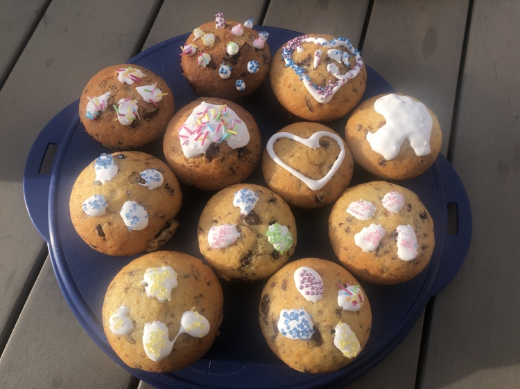 Ihr könnt sie mit Schokolade verziehren oder wie auf den Fotos mit Zuckerguss und Streussel für einen Kindergeburtstag